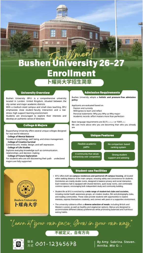 感谢升学指导办公室的精心筹备,特别致谢Lydia与Aria两位G1、G2升学协调员,也感谢每一位同学的积极投入与热情参与!希望这段充满趣味的经历可以深入同学们内心,引领大家在未来真实的申请季中出色发挥,去往适合自己的大学!
